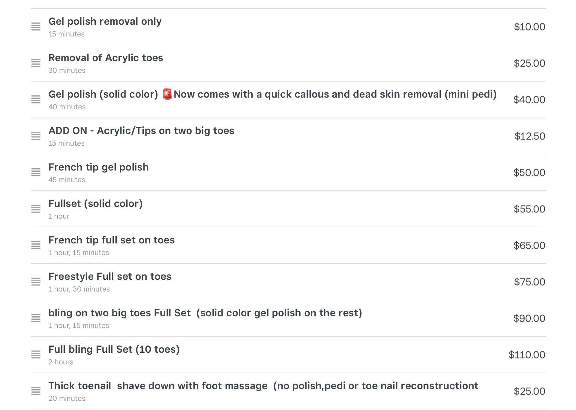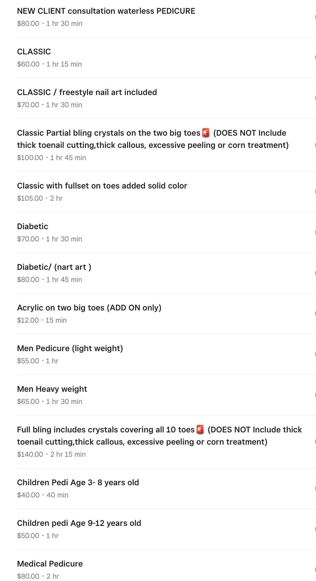 Pedicure Prices