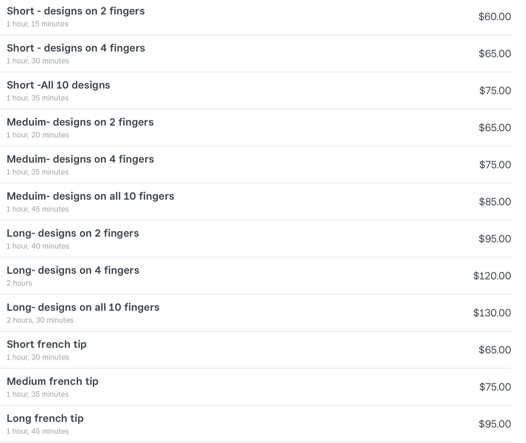"In the booking section, you'll notice I use the term 'freestyle' for nail art. This means the design is based on my signature styles and techniques.
